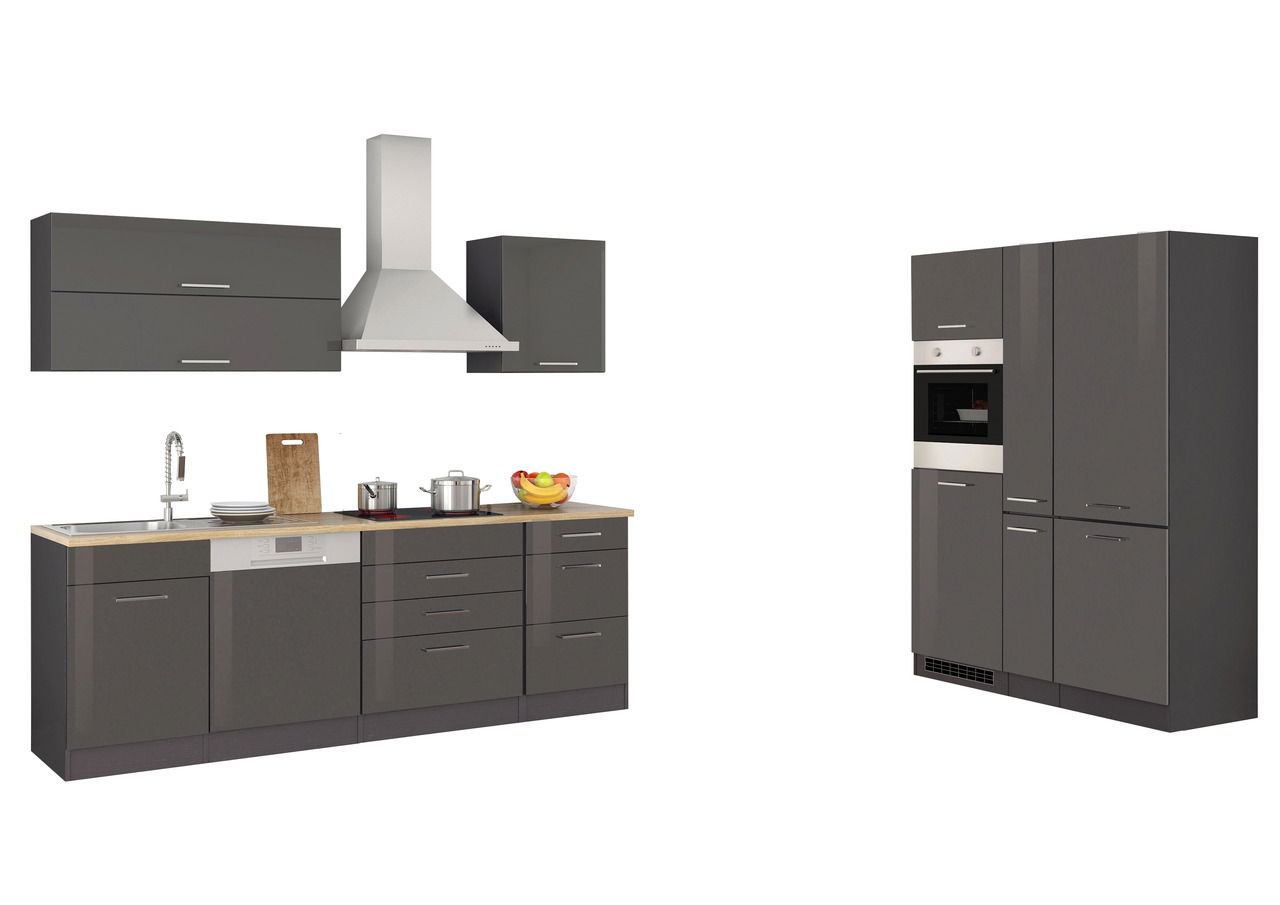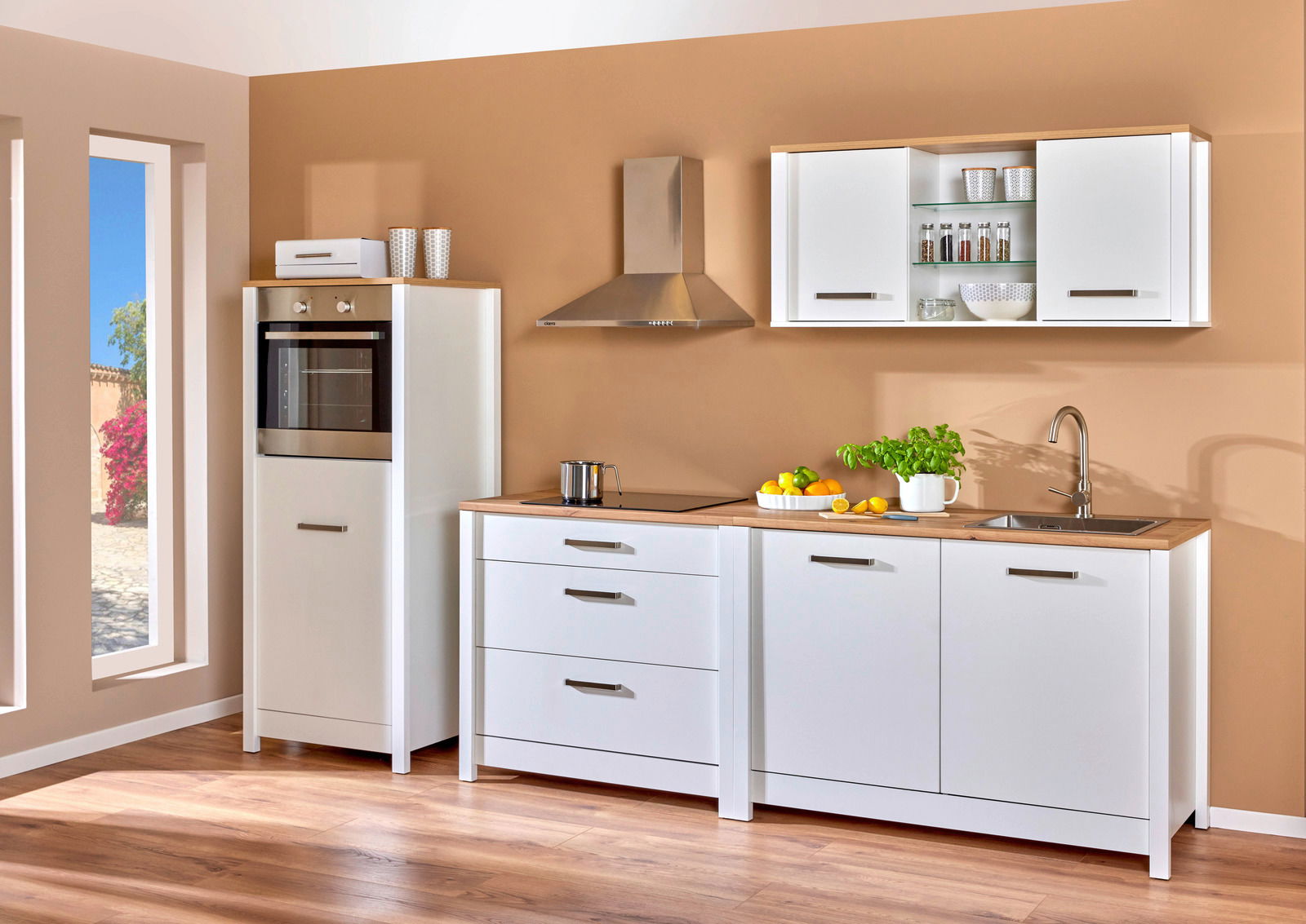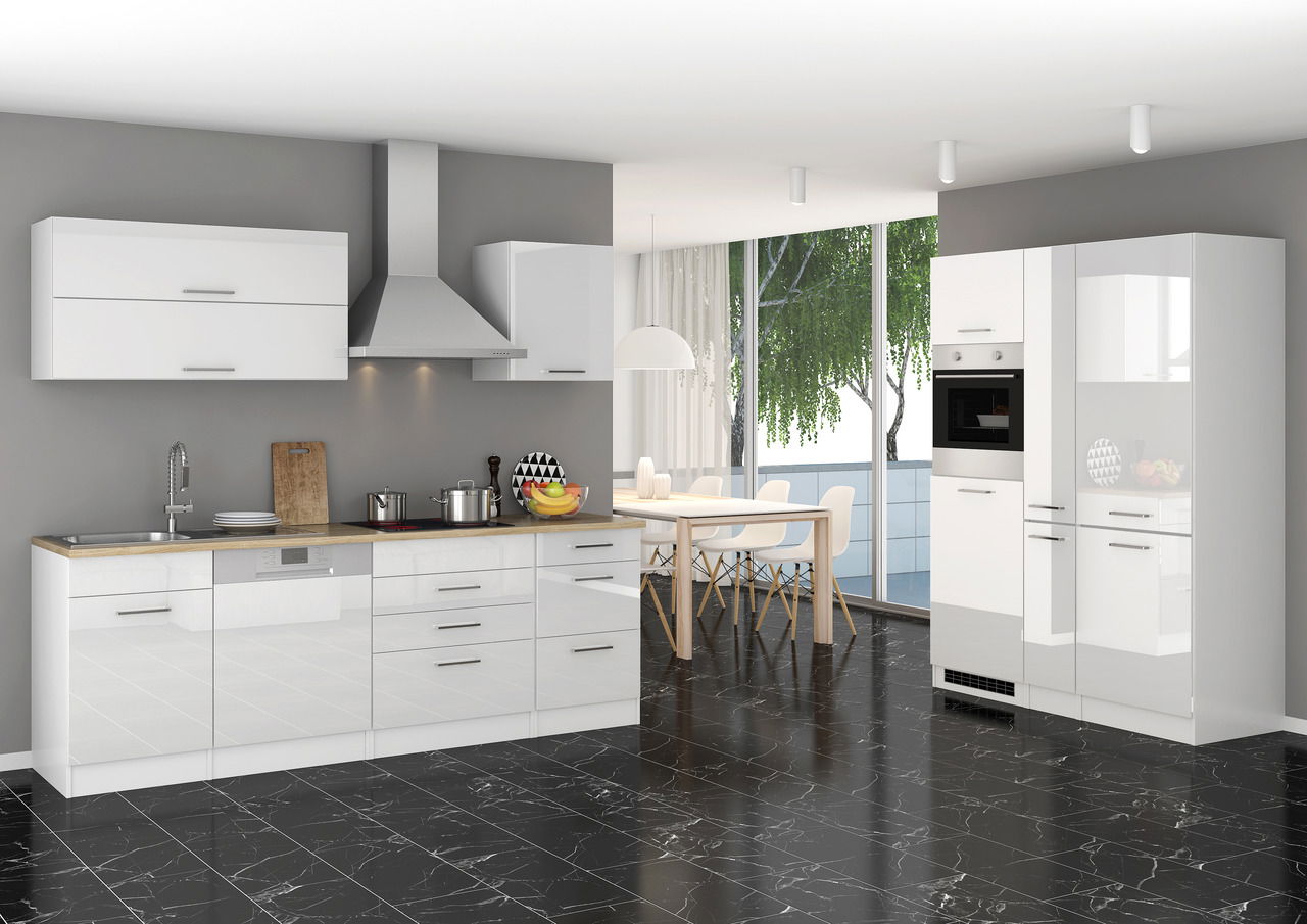 In Abhängigkeit von der Küchengröße und den persönlichen Ansprüchen wählen Sie mit wenigen Klicks Küchenzeilen ohne Geräte oder mit Geräten aus. Kochen Sie nur selten daheim und haben Sie nicht viel Platz, sind Mini-Küchen ideal, die auch als Singleküche oder Pantryküche bezeichnet werden. Sie verfügen über all das, was eine Basisausstattung in der Küche ausmacht: Kochplatten, Einlassbecken, Arbeitsplatte und Schränke für hinreichend Stauraum. Die klassischen Küchenzeilen sind deutlich breiter. Die Ober- und Unterschränke bieten für sämtliche Küchenutensilien und Geschirr sowie Lebensmittel Platz. Backofen- und Kühlumbauschränke sind ebenfalls vorhanden. Manchmal ist bereits eine Dunstabzugshaube dabei.
