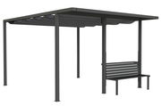Ihre Pergola der gleichnamigen Ausstattungsreihe ergänzen Sie mit der ZURBRÜGGEN Bank "SCHATTENMANUFAKTUR" um eine bequeme Sitzmöglichkeit. Licht und Schatten spielen bei dem attraktiven Design die Hauptrolle, und so zeigt sich die Gestaltung aus anthrazitfarbenem Metall reduziert. Bei nur 15 kg Gewicht erweist sich die Bank aus pulverbeschichtetem Aluminium als robust, wetterbeständig und stabil. Dank des integrierten Stützpfeilers und der Leiste am anderen Ende können Sie die Bank fest in Ihre Pergola einbauen. Die Sitzfläche (B ca. 150 cm) bietet Platz für zwei. Gönnen Sie sich die edle ZURBRÜGGEN Bank "SCHATTENMANUFAKTUR"!