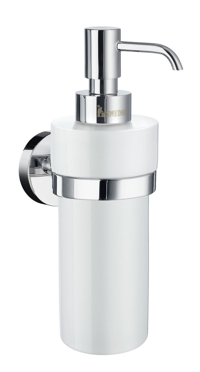 Im Badezimmer hilft der Smedbo Seifenspender "HOME" aus chromfarbenem Porzellan bei der hygienischen Reinigung der Hände. Der B/H/T ca. 9,5 x 25 x 6,6 cm große und 0,61 kg leichte Spender passt neben jedes Waschbecken. Er fasst 0,2 l Flüssigseife.