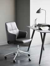 Holen Sie sich mit diesem Drehstuhl Wohnlichkeit in Ihre vier Wände. Der Stuhl der Firma Stressless kann mit seinem stilvollen Bezug aus Leder begeistern und hat die Farbe Schwarz. Er lädt auch aufgrund der komfortablen Polsterung aus Kaltschaum zum Wohlfühlen ein und verfügt über eine Sitzhöhe von 45 cm. Das Möbelstück hat eine Breite von 72 cm, eine Gesamthöhe von 87 cm und eine Tiefe von 72 cm. Es weist ein Gewicht von 17 kg auf und ist für ein Gewicht von bis zu 120 kg ausgelegt. Dieser Stuhl überzeugt durch hohen Sitzkomfort.