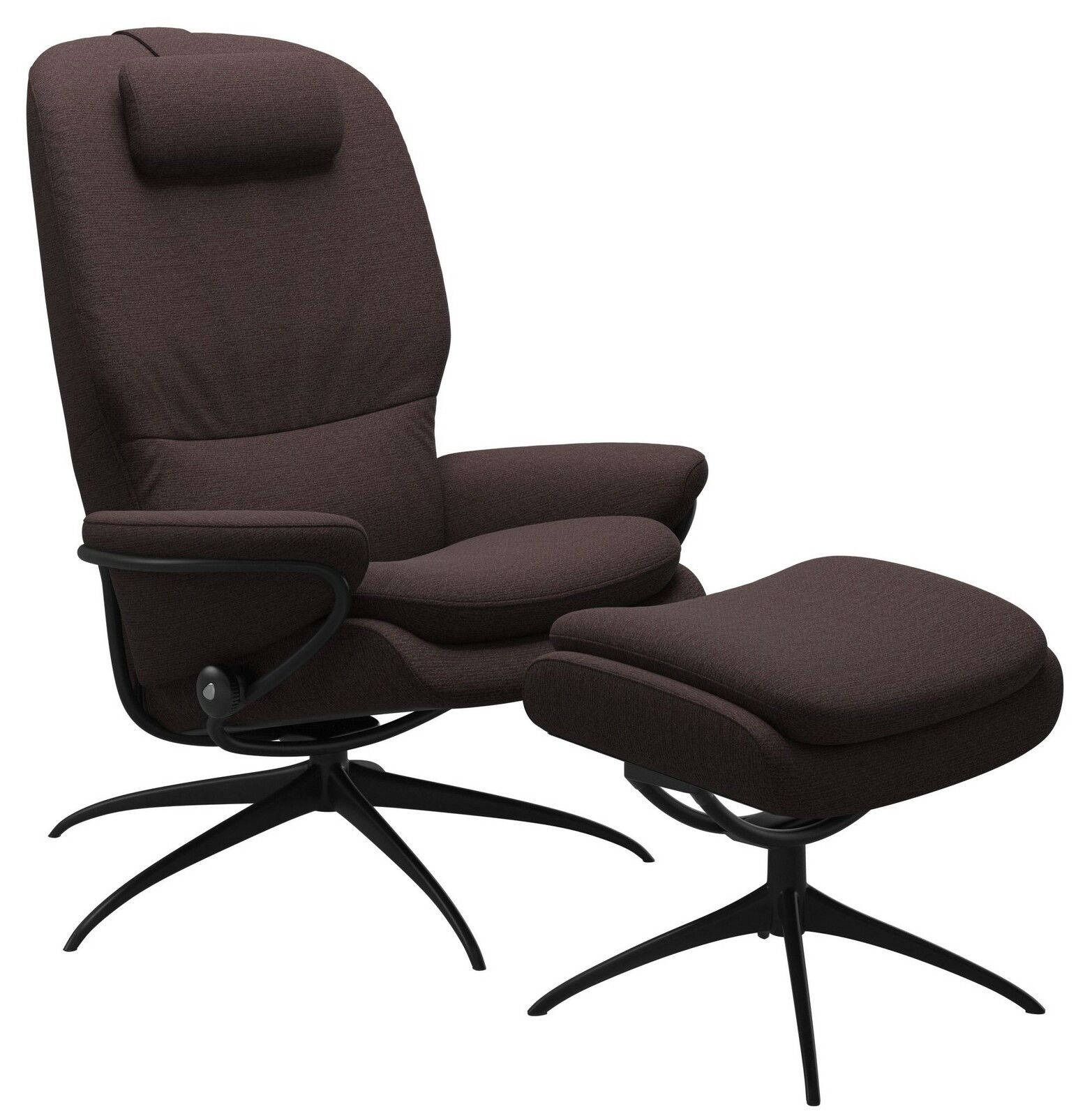 Erleben Sie höchsten Sitzkomfort mit dem Stressless Einzelsesselset ROME. Das moderne Design aus hochwertigem Stoff in der Farbe Aster Burgundy und dem schwarzen Sternfuß verleiht Ihrem Raum zeitlose Eleganz. Die großzügigen Maße von ca. 82x111x81 cm und die Komforthöhe sorgen für entspanntes Sitzen. Mit der Balance Adapt Funktion und dem Plus System bietet der Sessel individuelle Anpassungsmöglichkeiten. Der drehbare Sessel mit motorischer Aufstehhilfe und dem inkludierten Hocker schafft ein Rundum-Wohlfühlerlebnis. Made in Germany steht für Qualität, während die Belastbarkeit von 130 kg Langlebigkeit garantiert. Gönnen Sie sich pure Entspannung mit Stressless ROME.