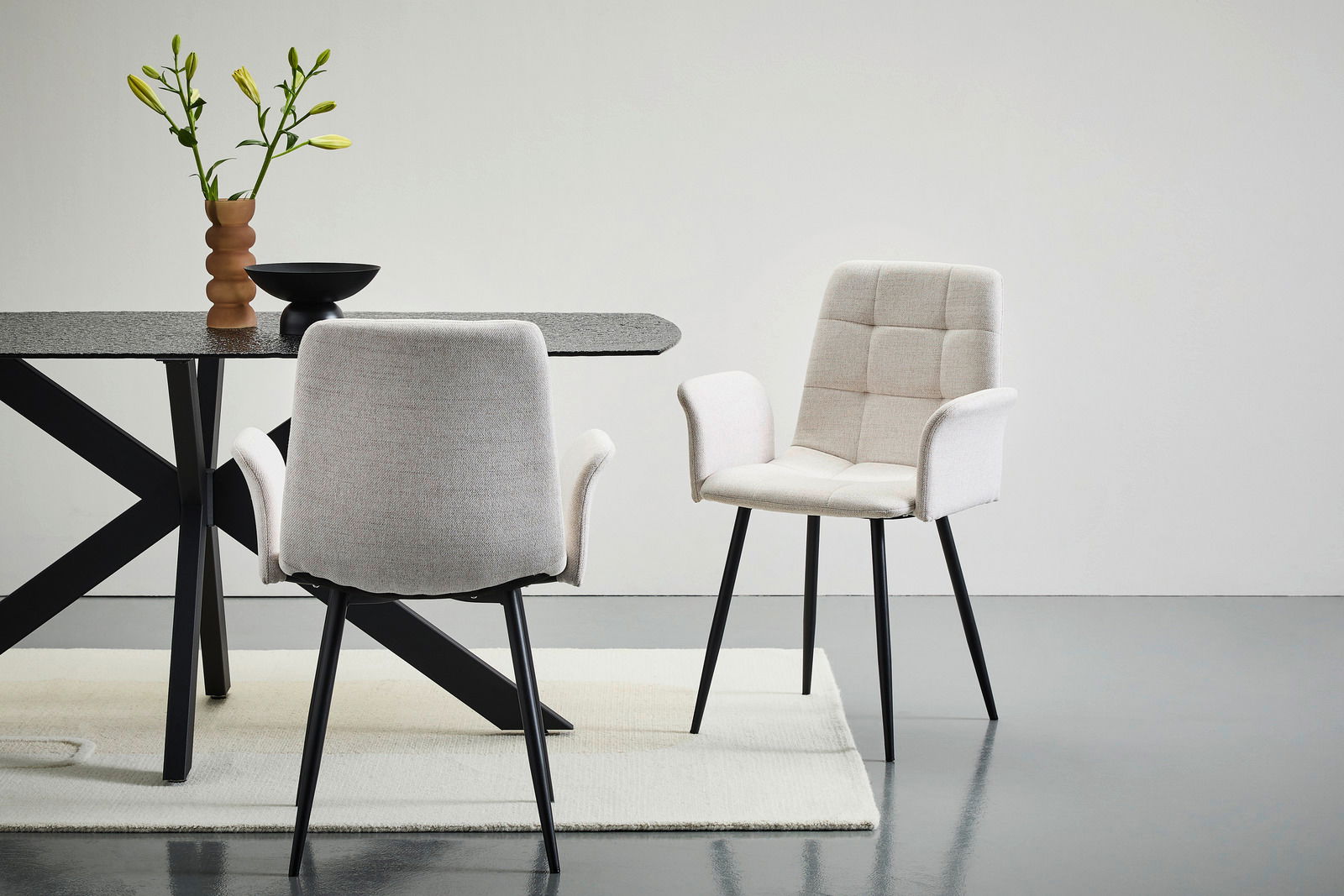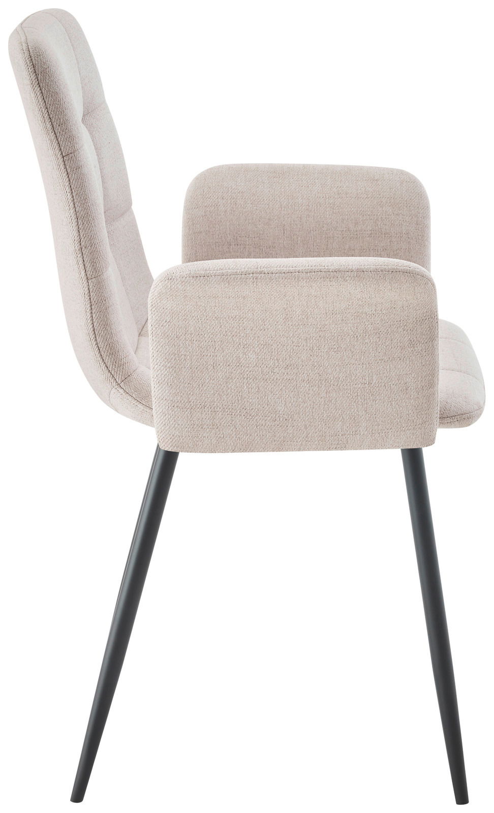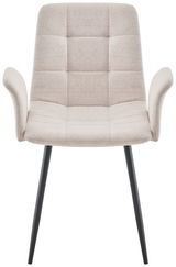 Stylife Armlehnstuhl JEFF: Eleganz und Komfort vereint Der Stylife Armlehnstuhl JEFF überzeugt nicht nur durch sein modernes Design, sondern auch durch seine funktionale Ausstattung. Die Sitztiefe von 40 cm und die stabile Konstruktion garantieren ein angenehmes Sitzerlebnis. Obwohl der Stuhl nicht drehbar oder höhenverstellbar ist, bietet er dennoch hervorragenden Komfort und eignet sich ideal für Esszimmer oder Büro. Die Kombination aus beigem Stoff und schwarzen Metallfüßen macht diesen Stuhl zu einem zeitlosen Highlight in jedem Raum. Ergänzen Sie Ihr Interieur mit dem Stylife Armlehnstuhl JEFF und genießen Sie stilvollen Komfort. Bestellen Sie jetzt und erleben Sie es selbst!