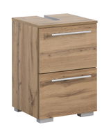 Eine warme Ergänzung zu Ihrem weißen Waschtisch ist der Stylife Waschbeckenunterschrank "CARLOS". Das rundum in Landhauseiche furnierte Badmöbel passt in modern-rustikale Bäder. Metallene Griffe und graue Füße akzentuieren ihn dezent.
