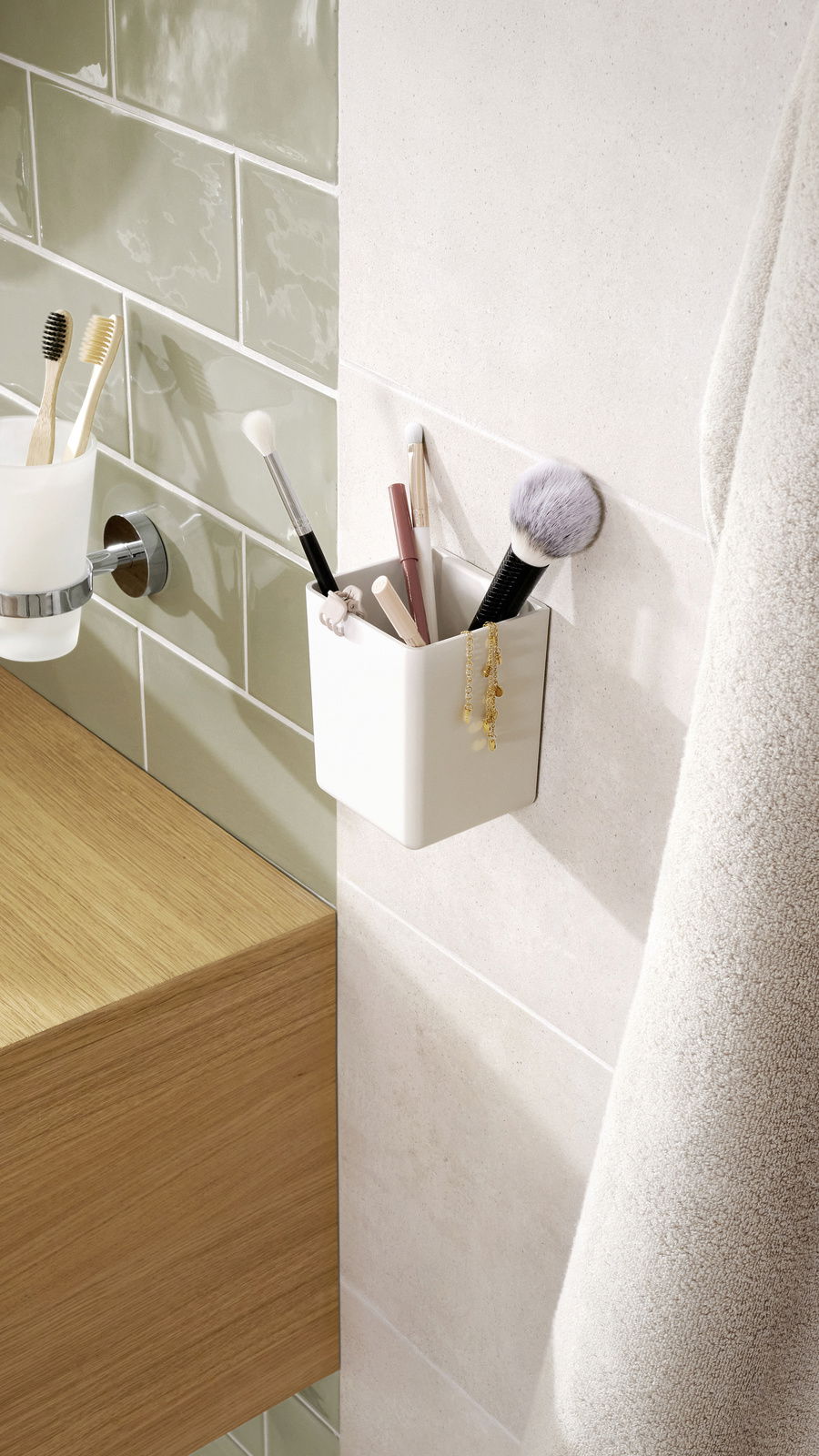 Tesa Aufbewahrungsbox BABOO: Einfache Befestigung ohne Bohren Erleben Sie die Freiheit, Ihre Badeinrichtung individuell zu gestalten, ohne dabei die Wände zu beschädigen. Die Tesa Aufbewahrungsbox BABOO lässt sich mühelos anbringen und bietet genügend Platz für all Ihre Pflegeprodukte. Das innovative Befestigungssystem mit den tesa® Powerstrips Waterproof XL sorgt für einen zuverlässigen Halt, selbst in feuchten Umgebungen. Die Box besteht aus robustem Kunststoff, der nicht nur langlebig ist, sondern auch leicht zu reinigen. Machen Sie Ihr Badezimmer zur Wohlfühloase und bestellen Sie die Tesa Aufbewahrungsbox BABOO noch heute!