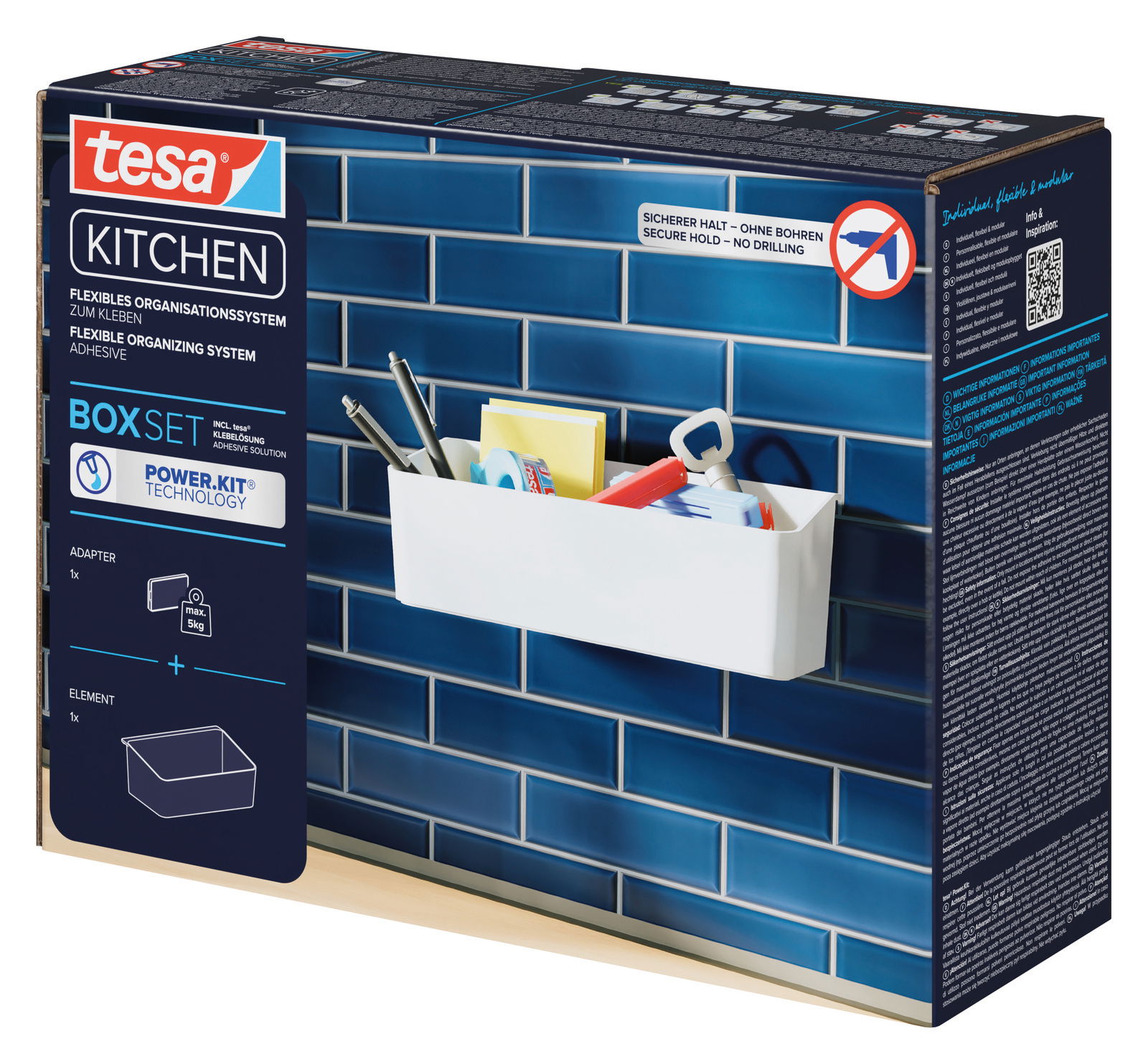 Erleben Sie die perfekte Kombination aus Funktionalität und modernem Design mit dem Tesa Box-Set KITCHEN. In einem strahlenden Weiß gehalten, fügt sich das Set nahtlos in jede moderne Küche ein und sorgt für einen stilvollen Look. Gefertigt aus hochwertigem Kunststoff, überzeugt es nicht nur durch seine Ästhetik, sondern auch durch seine Langlebigkeit. Das Set kommt mit einem innovativen Adapter und einem leistungsstarken Klebe-Powerkit, das eine einfache und sichere Befestigung ermöglicht. Ganz gleich, ob Sie Ordnung halten oder Ihre Küchenutensilien griffbereit haben möchten, dieses Set ist die ideale Wahl für jede stilbewusste Küche.