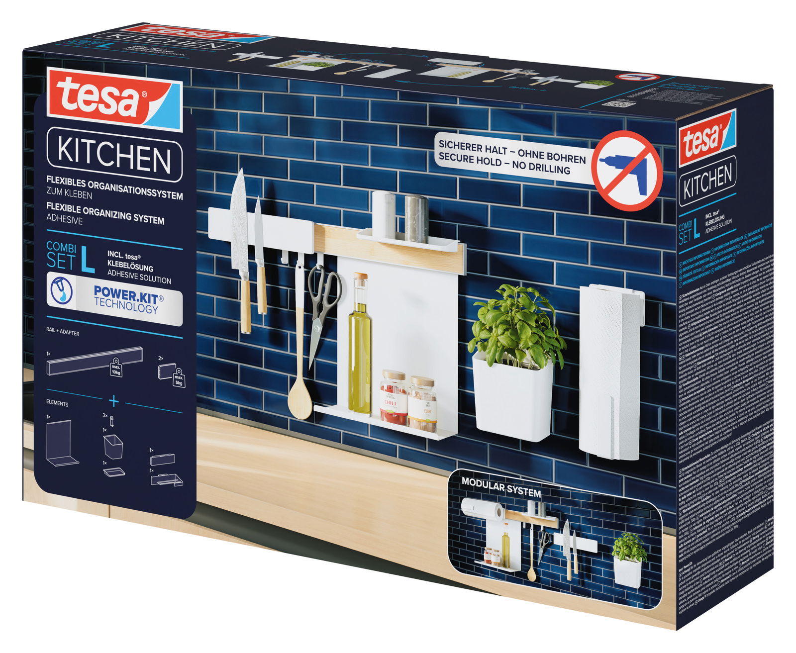 Tesa Küchenorganizer Kombi-Set L KITCHEN – Modernes Design für Ihre Küche
