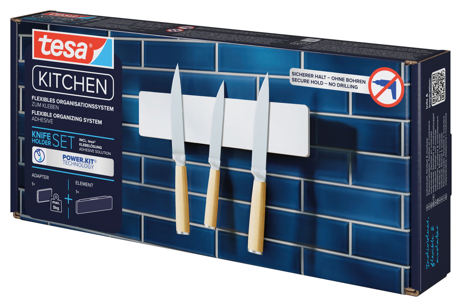 Kreative Ordnung mit Klebe-Powerkit Das Tesa Messerhalter-Set KITCHEN überzeugt durch sein smartes Klebe-Powerkit, das eine mühelose Montage ermöglicht. Der beiliegende Adapter sorgt dafür, dass der Messerhalter sicher an der Wand haftet und jederzeit entfernt werden kann, ohne Spuren zu hinterlassen. Diese flexible Lösung ist ideal für Mietwohnungen oder überall dort, wo Bohrlöcher vermieden werden sollen. Lassen Sie sich von der Kombination aus innovativer Technik und modernem Design begeistern. Greifen Sie jetzt zu und bringen Sie stilvolle Ordnung in Ihre Küche!