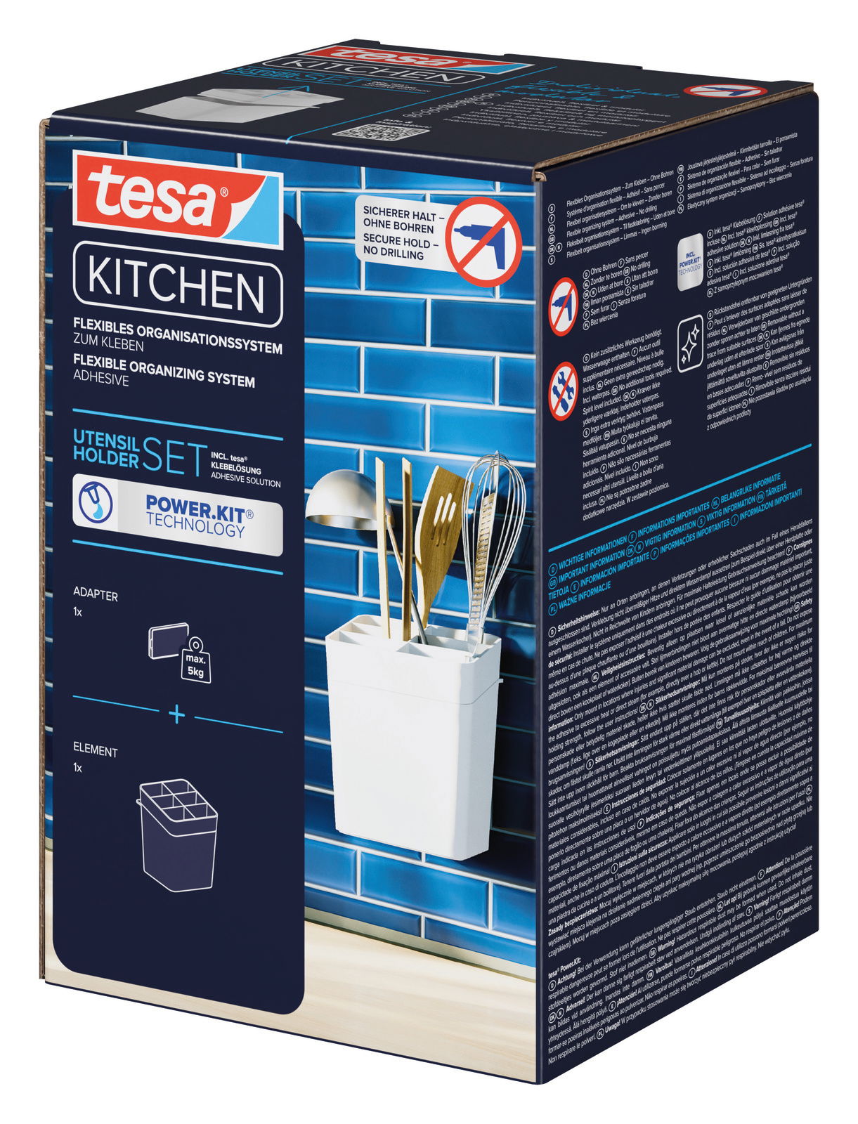 Tesa Utensilienhalter-Set KITCHEN – Ihre praktische Lösung Dieses Utensilienhalter-Set überzeugt nicht nur durch sein elegantes Design, sondern auch durch seine beeindruckende Funktionalität. Der verwendete Kunststoff ist robust und pflegeleicht, was ihn ideal für den täglichen Gebrauch in der Küche macht. Dank des mitgelieferten Adapters und des Klebe-Powerkits können Sie den Halter flexibel an der gewünschten Stelle befestigen, ohne die Wand zu beschädigen. Erleichtern Sie sich den Küchenalltag und bringen Sie Ordnung in Ihre Küchenutensilien. Ergreifen Sie die Chance und verwandeln Sie Ihre Küche in einen aufgeräumten und stilvollen Raum.