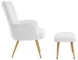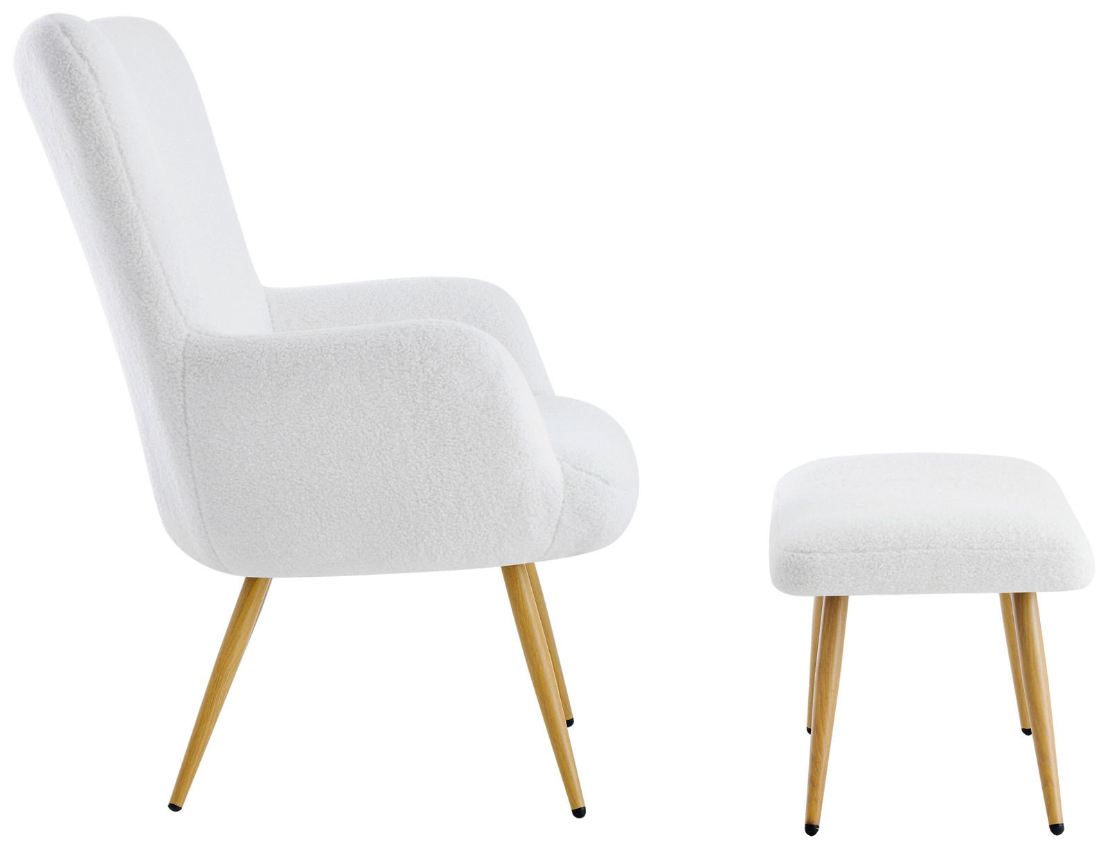 Erleben Sie den modernen Stil mit dem Ti´me Sessel mit Hocker RICARDA, der in einem eleganten Weiß gehalten ist und perfekt in jedes zeitgenössische Interieur passt. Der Bezug aus hochwertigem Webstoff verleiht diesem Möbelstück nicht nur eine ansprechende Optik, sondern auch eine angenehme Haptik. Der Sessel überzeugt durch seine komfortable Polsterung aus PU-Schaum, die Ihnen ein bequemes Sitzerlebnis bietet. Mit einer Sitzhöhe von 43 cm, einer Sitztiefe von 54 cm und einer Sitzbreite von 48 cm ist er ideal für entspannte Stunden geeignet. Die Belastbarkeit von bis zu 140 kg unterstreicht die Stabilität und Langlebigkeit des Sessels.
