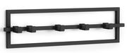 Die Umbra Wandgarderobe CUBIKO setzt mit ihrem trendigen Design in Schwarz stilvolle Akzente. Aus hochwertigem Metall gefertigt, bietet sie mit Maßen von ca. 53 x 15 x 6 cm (B/H/T) und einem Gewicht von nur 0,68 kg eine platzsparende und dennoch robuste Lösung für Ihren Eingangsbereich. Die 5 beweglichen Haken ermöglichen eine flexible Nutzung und Organisation Ihrer Kleidung. Diese in Deutschland gefertigte Wandgarderobe besticht durch ihr modernes Erscheinungsbild. Der Lieferumfang umfasst die Garderobe ohne Dekoration. Entdecken Sie die perfekte Kombination aus Funktionalität und Design – bestellen Sie die Umbra Wandgarderobe CUBIKO noch heute!