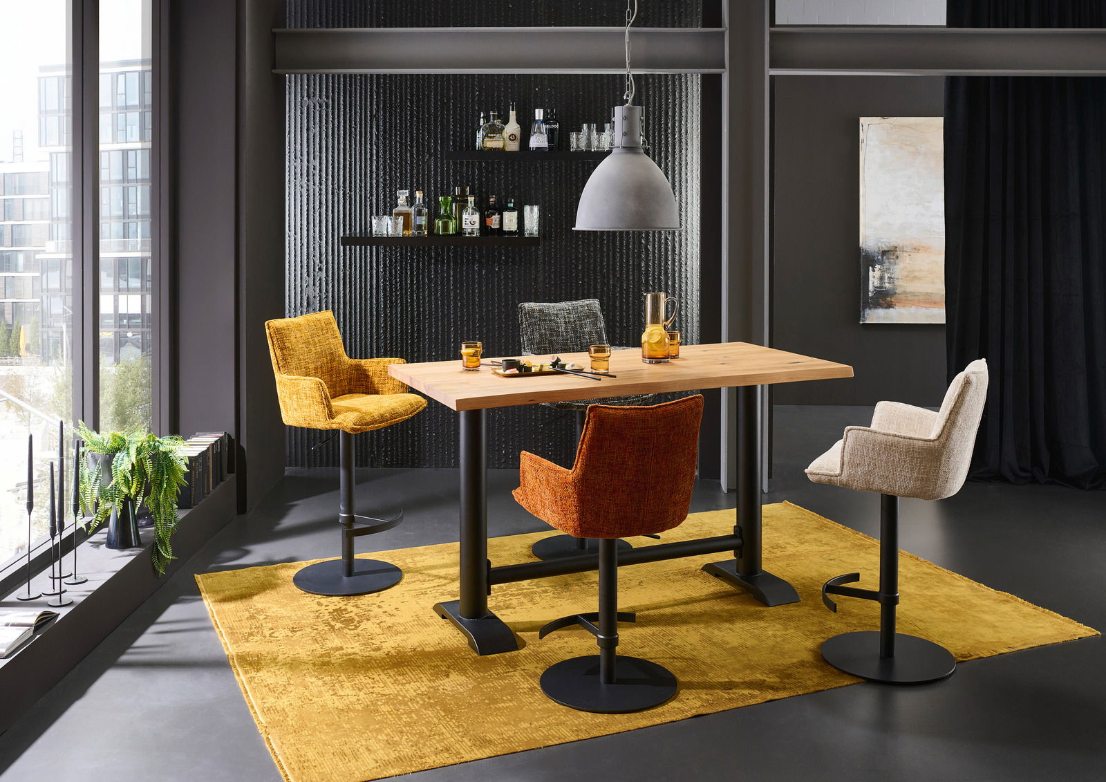 Entdecken Sie den Valdera Bartisch MOJITO, der mit seinem modernen und trendigen Design in jedem Raum ein stilvolles Statement setzt. Die Tischplatte aus massivem Wildeichenholz besticht durch ihre natürliche Schönheit und die gefräste Baumkante, die jedem Stück einen einzigartigen Charakter verleiht. Die rechteckige Form des Tisches passt perfekt in zeitgemäße Wohnräume und schafft eine warme, einladende Atmosphäre. Dank der Verwendung von Echtholz bietet der Bartisch eine hervorragende Holzqualität, die Langlebigkeit und Robustheit garantiert. Der Tisch ist nicht höhenverstellbar, was seine Stabilität und Festigkeit unterstreicht, während er bis zu 50 kg belastbar ist.