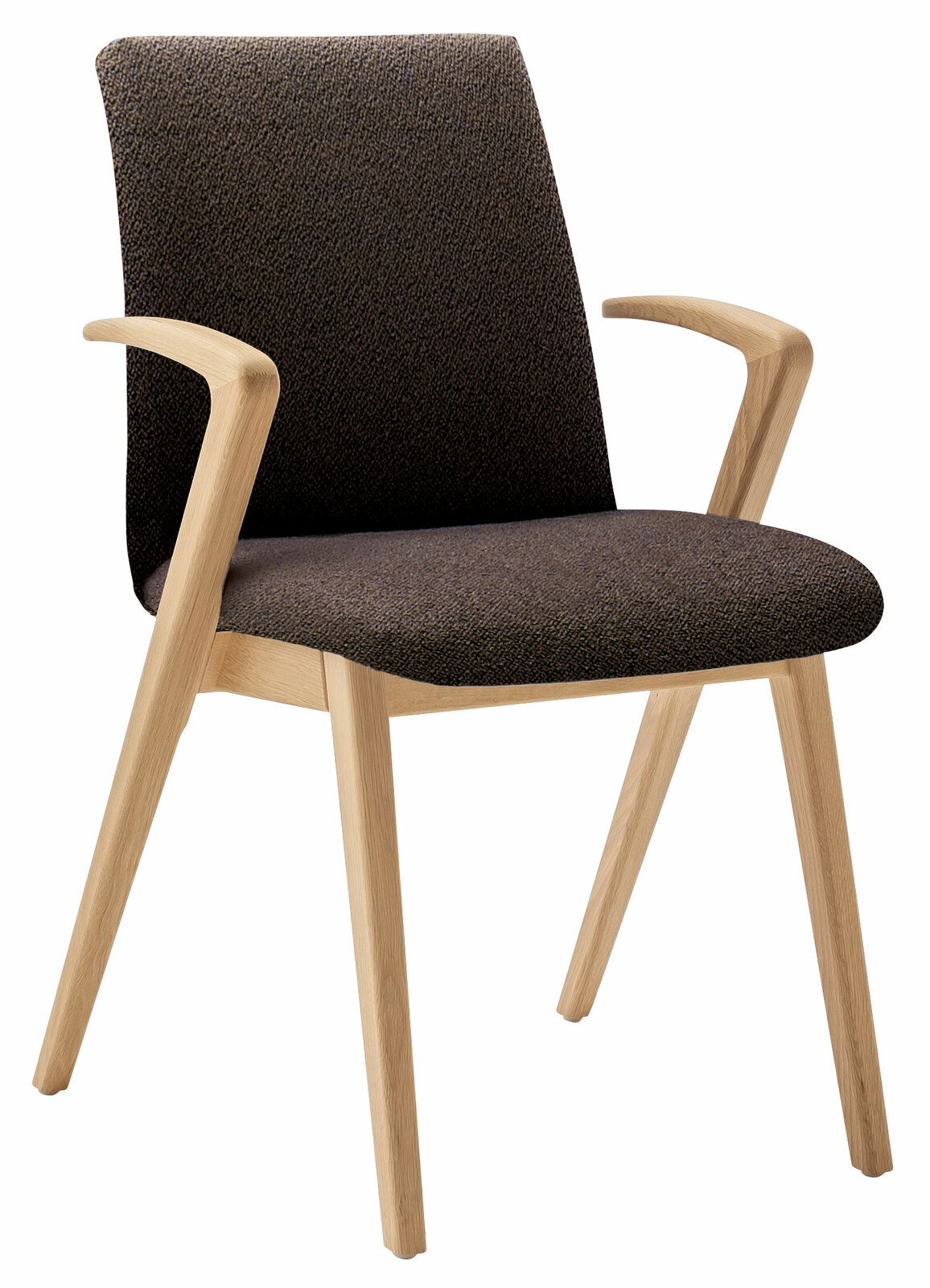 Der Venjakob Armlehnstuhl KALEA ist die perfekte Ergänzung für Ihr modernes Zuhause. Mit einem stilvollen Design, das sich durch klare Linien und eine trendige Ästhetik auszeichnet, passt dieser Stuhl nahtlos in jedes zeitgenössische Interieur. Der Bezug in der Farbe Genua coffee verleiht dem Stuhl eine warme und einladende Ausstrahlung, während der eichenfarbene Holzfuß für Stabilität und Eleganz sorgt. Die Sitzhöhe von 51 cm bietet optimalen Komfort, ideal für lange Abende am Esstisch. Der hochwertige Stoffbezug und die solide Holzkonstruktion garantieren Langlebigkeit und Strapazierfähigkeit, sodass Sie lange Freude an diesem Möbelstück haben werden.