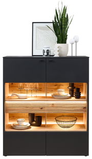Highboard LUMEA - stilvolle Ordnung und atemberaubende BeleuchtungDas Highboard LUMEA besticht nicht nur durch sein Design, sondern auch durch seine Funktionalität. Es verfügt über zwei Drehtüren und eine praktische Schublade, die viel Platz für Ihre persönlichen Gegenstände bieten. Ein besonderes Highlight ist die integrierte LED-Beleuchtung, die für eine stimmungsvolle Atmosphäre sorgt und Ihre Lieblingsstücke perfekt in Szene setzt. Der mitgelieferte Trafo und die Extra Verlängerung garantieren eine problemlose Installation. Bitte beachten Sie, dass die Dekoration nicht im Lieferumfang enthalten ist. Schaffen Sie sich mit dem Venjakob Highboard LUMEA einen stilvollen und gleichzeitig praktischen Wohntraum. Gönnen Sie sich dieses Schmuckstück und bestellen Sie jetzt.