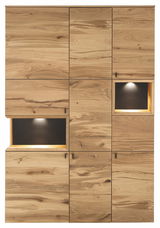 Venjakob Vitrine ANDIAMO 3.0 - Moderne Eleganz Das Highboard der Venjakob Vitrine ANDIAMO 3.0 wird durch zwei 1er Sets LED-Beleuchtung und eine Ambiente-Beleuchtung ergänzt, die eine stimmungsvolle Lichtquelle in Ihrem Wohnbereich darstellen. Der praktische Trafo sorgt für eine effiziente Energieversorgung. Die rustikale Eichefarbe des Korpus und der Fronten harmoniert perfekt mit dem schlichten Griffdesign, das die moderne Ästhetik unterstreicht. Erleben Sie die perfekte Kombination aus Stil und Funktionalität und verschönern Sie Ihr Zuhause mit diesem beeindruckenden Möbelstück. Bestellen Sie jetzt und verwandeln Sie Ihr Wohnzimmer in eine Wohlfühloase.