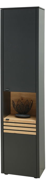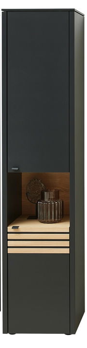 Die Venjakob Vitrine GAME präsentiert sich als herausragendes Möbelstück, das sowohl durch sein Design als auch durch seine Funktionalität überzeugt. Mit ihrer stilvollen Front in anthrazit matt und den feinen Akzenten aus Eiche furniert, integriert sich diese Vitrine nahtlos in moderne Wohnambiente. Die Höhe von 208 cm und die Breite von 47 cm bieten grosszügigen Stauraum, während die Tiefe von 43 cm die Platzierung in nahezu jedem Raum ermöglicht. Der Korpus und die Front sind in anthrazit gehalten, was eine edle und gleichzeitig unaufdringliche Ausstrahlung garantiert. Mit zwei Drehtüren ausgestattet, hinter denen sich hochwertiges Optiwhite Klarglas verbirgt, bietet diese Vitrine einen sicheren Platz für Ihre Dekorationsobjekte und Sammlungen.