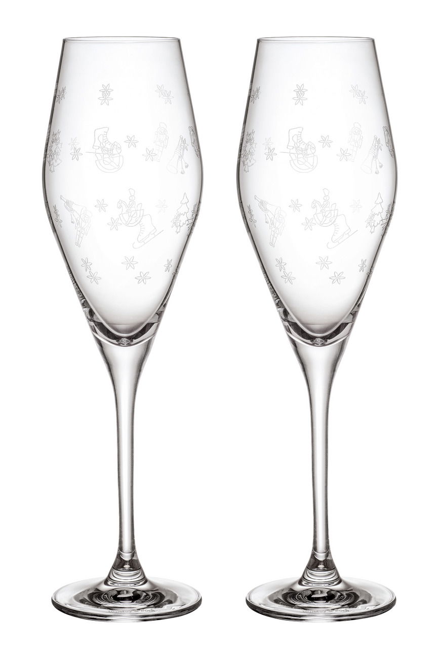 Stilsicheres Anstoßen erlaubt das Villeroy & Boch Sektkelch 2er-Set "TOY’S DELIGHT". In den H ca. 25,2 cm großen Kristallklargläsern perlen Schaumweine durch das Winterdekor besonders festlich. Das spülmaschinengeeignete Set (0,32 kg) beinhaltet zwei Stielgläser mit einer Füllmenge von je 0,25 l.