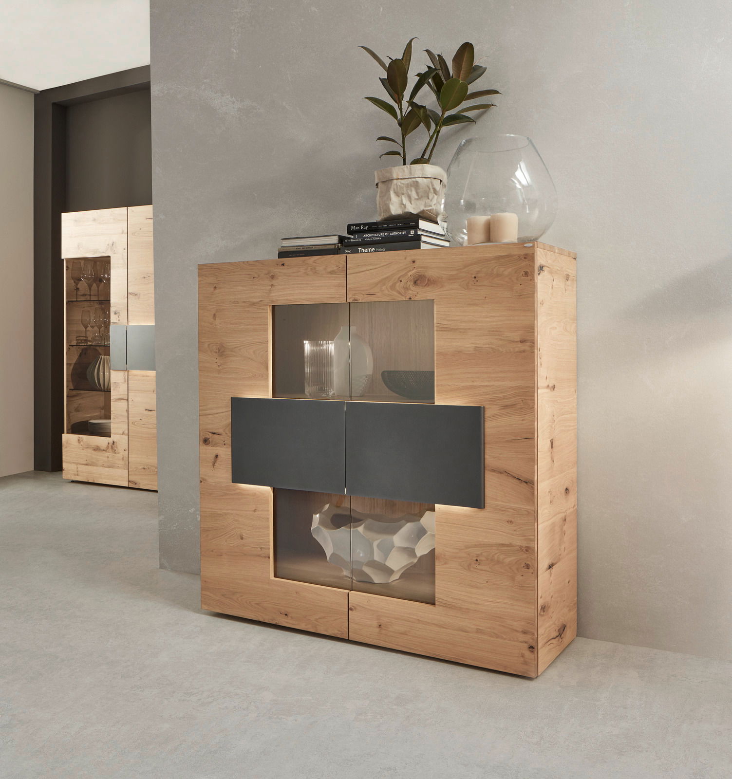 Ansprechendes Voglauer Highboard "V-TAURINO" in Wildeichenoptik