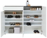 Im Voleo XXL-Schuhschrank "YES" findet Ihre Schuhsammlung eine wohlverdiente Unterbringungsmöglichkeit. Klare weiße Hochglanzfronten setzen zur Griffleiste sowie der Abdeckplatte mit markantem Schiefer-Dekor ein cleanes Finish im modernen Eingangsbereich.