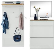 VOSS Garderoben-Set VORTINA: Elegantes Design für Ihren Flur Das VOSS Garderoben-Set VORTINA besteht aus einem Hängeschuhschrank, einem Spiegel, einem Garderobenpaneel und einem Ablageboard. Der Hängeschuhschrank bietet mit einer Schublade praktischen Stauraum für Schuhe und andere Accessoires. Der großzügige Spiegel mit den Maßen 80x60x3 cm verleiht Ihrem Raum zusätzliche Helligkeit und Tiefe. Das Garderobenpaneel bietet mit seiner Höhe von 170 cm ausreichend Platz für Jacken und Mäntel, während das Ablageboard als praktische Ablagefläche dient. Erleben Sie, wie dieses stilvolle Set Ihren Eingangsbereich aufwertet und bestellen Sie jetzt.