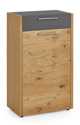 Die Voss Kommode "LEVIO" liegt mit ihrem zweifarbigen Design in Mattgrau und Eichenfurnier und den Metallgriffen in Mattsilber absolut im Trend. Sie passt in den Flur oder Wohnbereich Ihres modern eingerichteten Zuhauses.