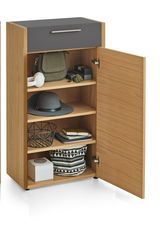 Bei einer Größe von B/H/T ca. 61 x 103 x 37 cm wiegt sie 43 kg, die von vier schwarzen Füßen sicher getragen werden. In der schmalen Kommode bewahren Sie auf drei Fachböden und in einen Schubkasten mit Vollauszug allerlei Gegenstände auf. Bringen Sie in der Voss Kommode "LEVIO" Ihre Sachen elegant unter!