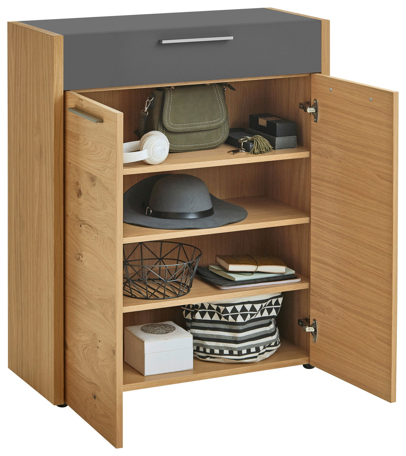 In kleinen Flur- und Raumbereichen findet das B/H/T ca. 86 x 103 x 37 cm große Möbel seinen Platz (Gewicht 54 kg). Bestückt mit einem Schubkasten (Vollauszug/Selbsteinzug) für Accessoires sowie drei höhenverstellbaren Einlegeböden bietet das Modell genug Stauraum. Zwei gedämpfte Türen bewahren das ordentliche Erscheinungsbild der Kommode. Kaufen Sie die Voss Kommode "LEVIO"!