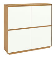 Teilmassive SchuhkommodeB/H/T ca. 127 x 124 x 37 cm bieten bei diesem teilmassiven Stück Platz für 4 Drehtüren. Diese lassen sich grifflos öffnen und schließen. Hinter den Türen verbergen sich jeweils 2 Einlegeböden. So können Sie bis zu 36 Paar Schuhe unterbringen. Damit ist die Kommode auch für Familien bestens geeignet. 89 kg Eigengewicht machen sie stabil. Kaufen Sie jetzt die Voss Schuhkommode "V100"!