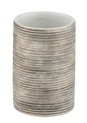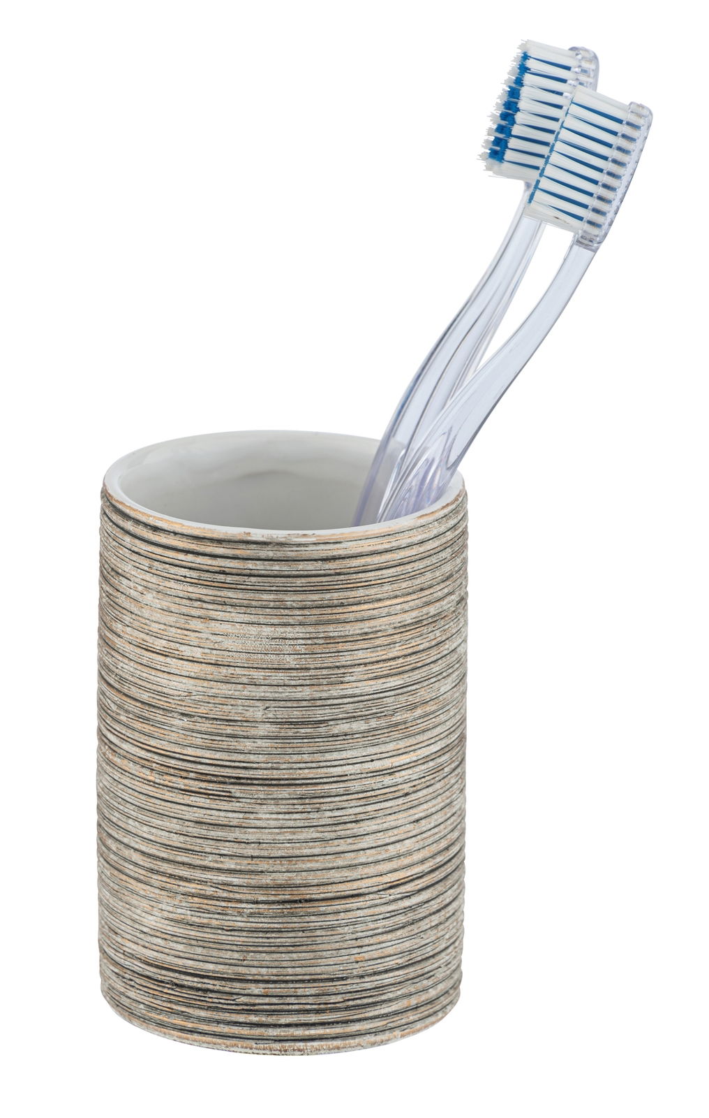Im Wenko Keramik Zahnputzbecher "FEDIO" finden Zahnbürsten einen Platz. Der B/H ca. 8 x 11 cm große Behälter passt auf jedes Waschbecken oder auf die Ablage. Er ist in Gold mit eleganten Streifen designt und besteht aus hochwertiger Keramik.