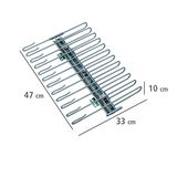 Mit dem praktischen Schrankauszug Hosenbügel von Wenko wird übersichtliche Ordnung im Kleiderschrank geschaffen. Von der Jeans bis zur Buntfaltenhose kann alles knitterfrei aufgehängt und platzsparend untergebracht werden. Von Vorteil ist hierbei die schnelle Aufhängemöglichkeit. Bis zu 12 Hosen finden hier gleichzeitig Platz. Die Gesamtmaße betragen B/H/T ca. 33 x 10 x 47 cm. Hergestellt wird der Auszug aus verchromtem Metall und ist in einem attraktiven Silberfarbton gehalten. Sichern Sie sich jetzt diesen praktischen Schrankauszug Hosenbügel von Wenko und sorgen damit für eine knitterfreie Garderobenaufbewahrung.