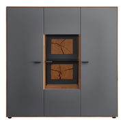 Das Wöstmann Markenmöbel Highboard WM 2410 vereint stilvolles Design mit hochwertiger Verarbeitung. Gefertigt aus massivem Wildeichenholz, beeindruckt dieser elegante Schrank mit einer sanft gebürsteten Oberfläche und einem einzigartigen Hirnholz-Rückwand-Akzent. Die Kombination aus Graphit und braunen Farbtönen sorgt für eine harmonische Optik, die jedem Raum einen natürlichen Charme verleiht. Ausgestattet mit drei Drehtüren, darunter eine mittig platzierte Holz-/Glastür mit rechtem Anschlag, bietet das Highboard ausreichend Stauraum und Flexibilität. Das Sicherheitsglas und die carbon pulverbeschichteten Metallgriffe unterstreichen die Qualität und Langlebigkeit dieses Möbelstücks, das ohne Beleuchtung auskommt.