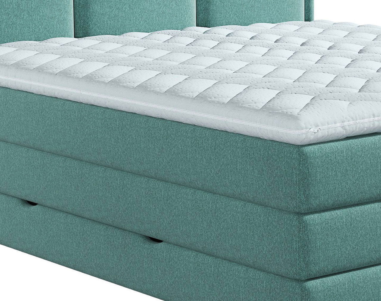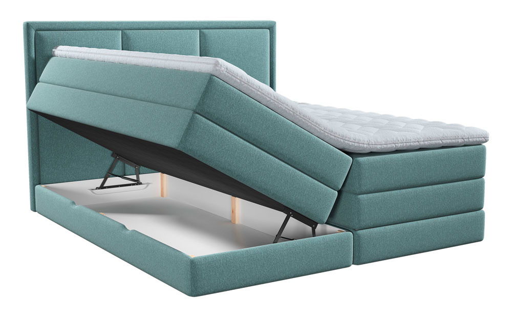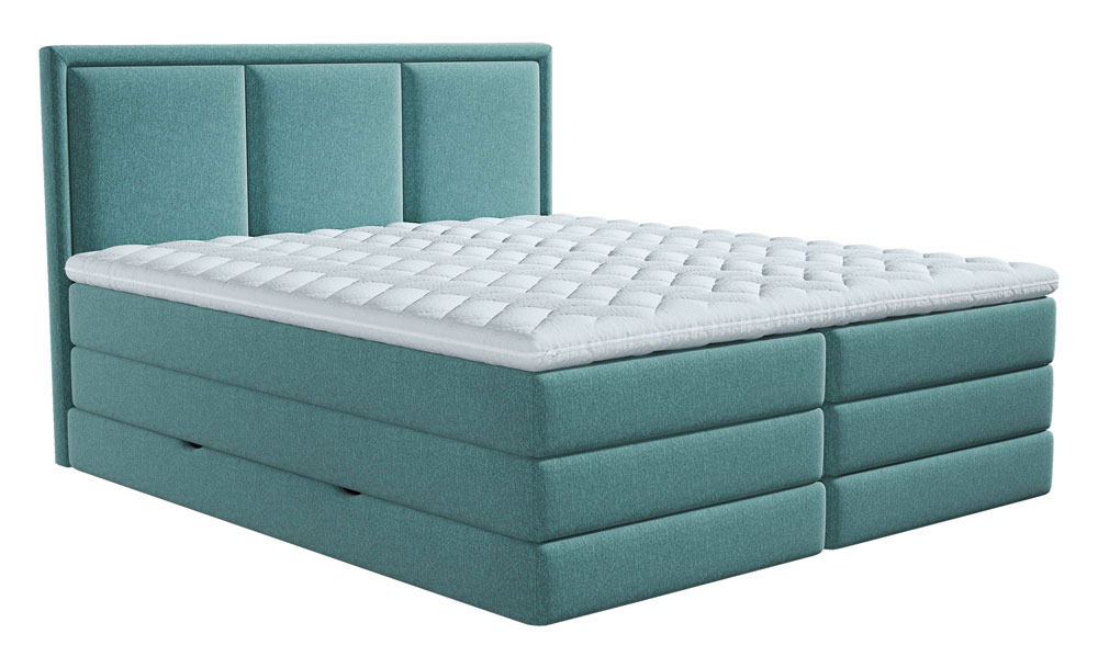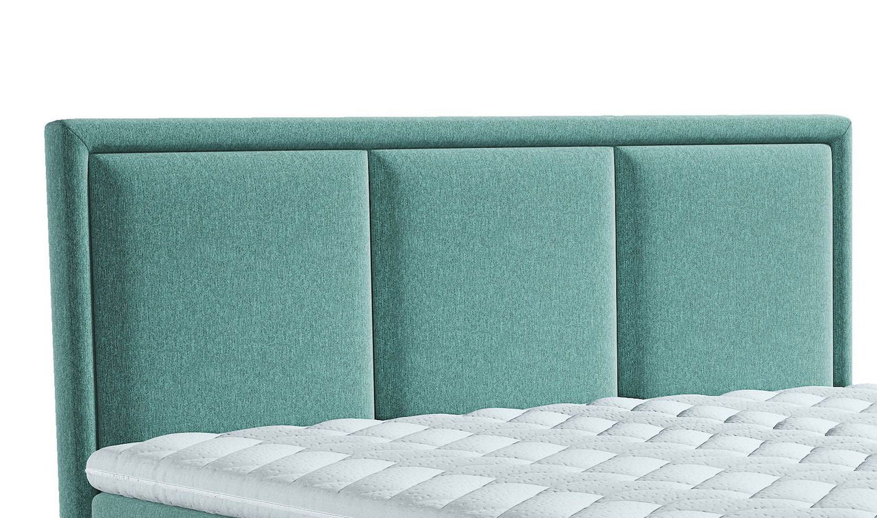 Das Xora Boxspringbett "SWING" ergänzt durch sein klares Designkonzept mit 1960er-Jahre-Flair das moderne Landhaus- sowie Skandi-Ambiente. Die dezente Polstergestaltung mit gestepptem Kopfteil in Grün verleiht dem Schlafzimmer einen frischen Akzent.