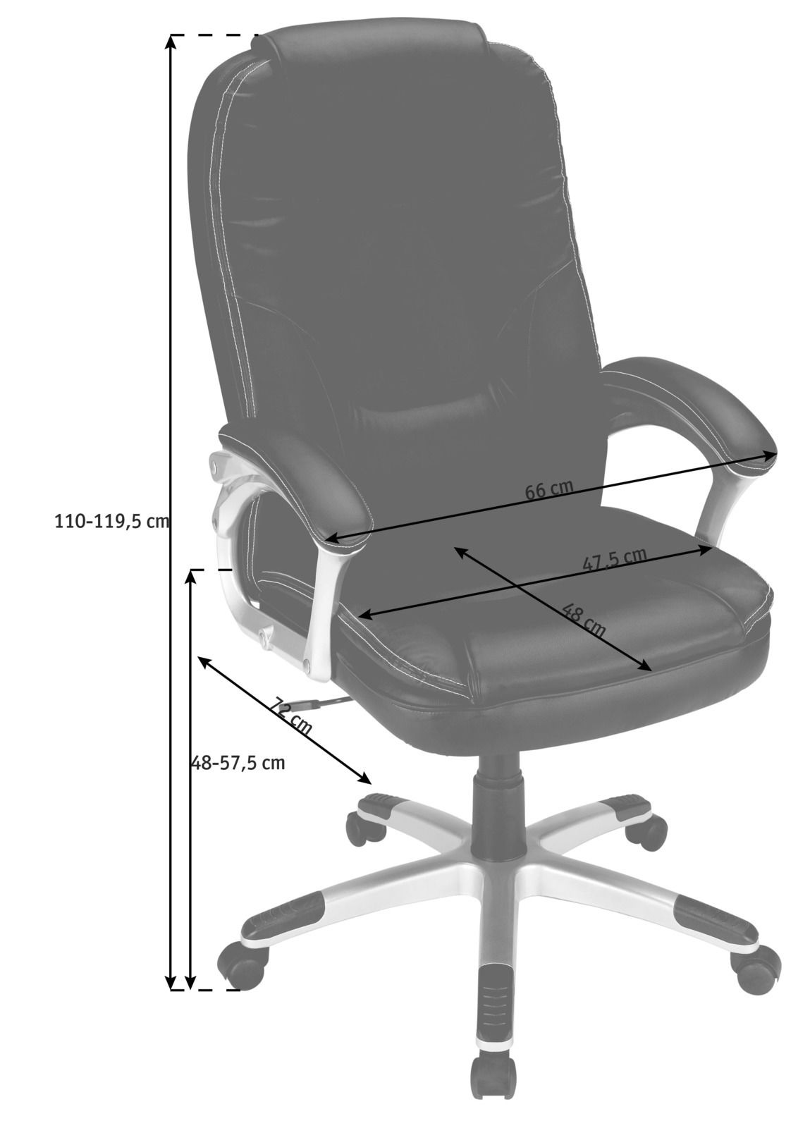 Chefsessel mit Kippmechanismus und gebremsten RollenIm Bürostuhl mit den Maßen B/H/T von ca. 66 x 110 x 72 cm sitzen Sie ergonomisch. Dafür sorgen bezogene Armlehnen, ein Kippmechanismus und die Höhenverstellbarkeit mit TÜV-Gaslift. Der bis 120 kg belastbare Bürostuhl verfügt zudem über gebremste Rollen. Zeigen Sie, wer der Boss ist, mit dem Chefsessel "MARS" von XORA!