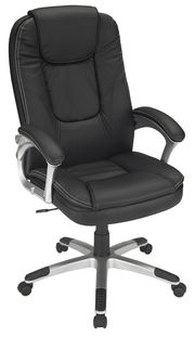 Der Chefsessel "MARS" von XORA beeindruckt durch Optik und technische Ausstattung. Bezogen ist der Sessel mit einem schwarzen Kunstleder, das wunderbar zum silberfarbenen Gestell passt.