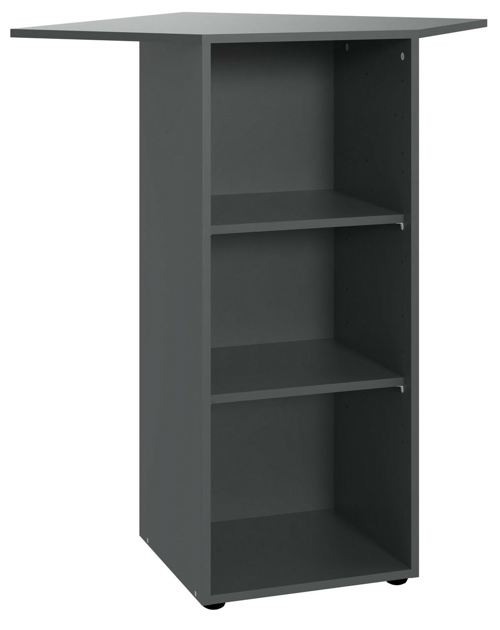 Dieses Eckregal hilft Ihnen, Platz optimal zu nutzen. Holen Sie sich mit dem Regal die XORA-Markenqualität nach Hause. Nutzen Sie den Platz von zwei Böden. Das Modell MULTI-MRK besteht aus Holz, ist graphitfarben und ergänzt Ihr persönliches Einrichtungskonzept durch sein modernes Design. Die Fronten aus einem graphitfarbenen Material vervollständigen das attraktive Gesamtbild der Aufbewahrungsmöglichkeit. Das Regal besitzt eine Breite von 66 Zentimetern, ein Höhenmass von insgesamt 98 Zentimetern sowie eine Tiefe von 66 Zentimetern. Es kommt mit einem Gewicht von 22 Kilogramm. Lassen Sie dieses Regal bei sich einziehen.