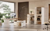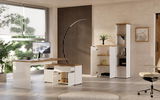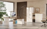 Der Xora Eckschreibtisch "IDEA" erweitert den landhausorientierten Office- oder Wohnbereich um ein funktionales Möbel. Mit seinen hochglanzweißen Fronten mit Metallgriffen in Alu-Optik und den Tischplatten in cognacfarbenem Eiche-Dekor wirkt er sehr elegant.