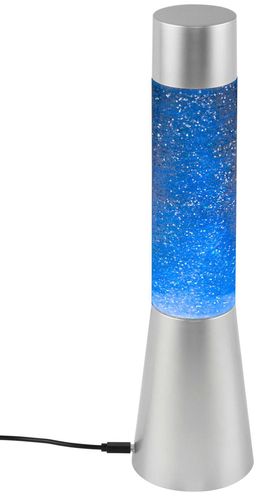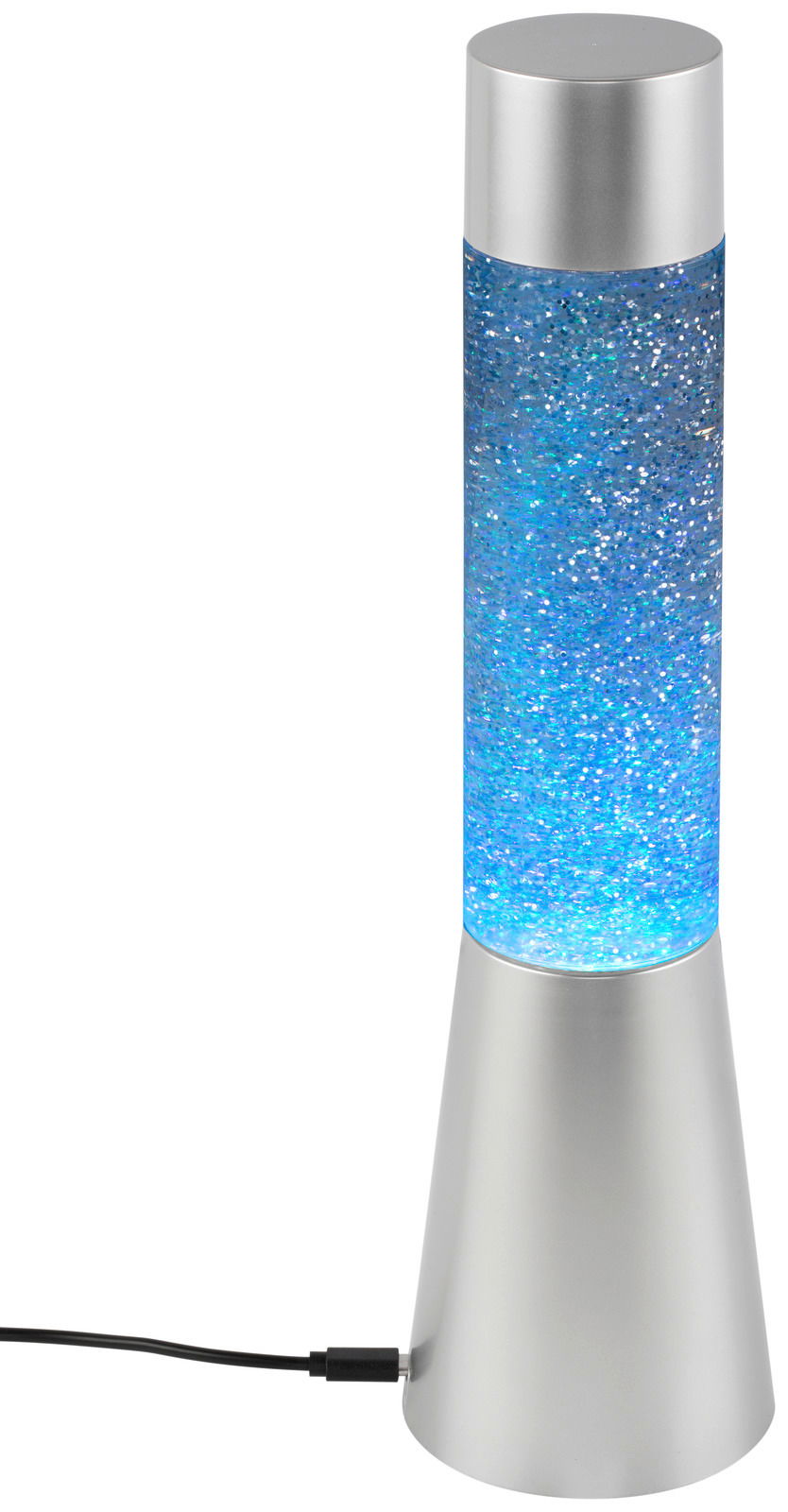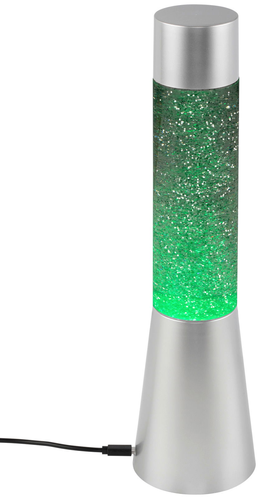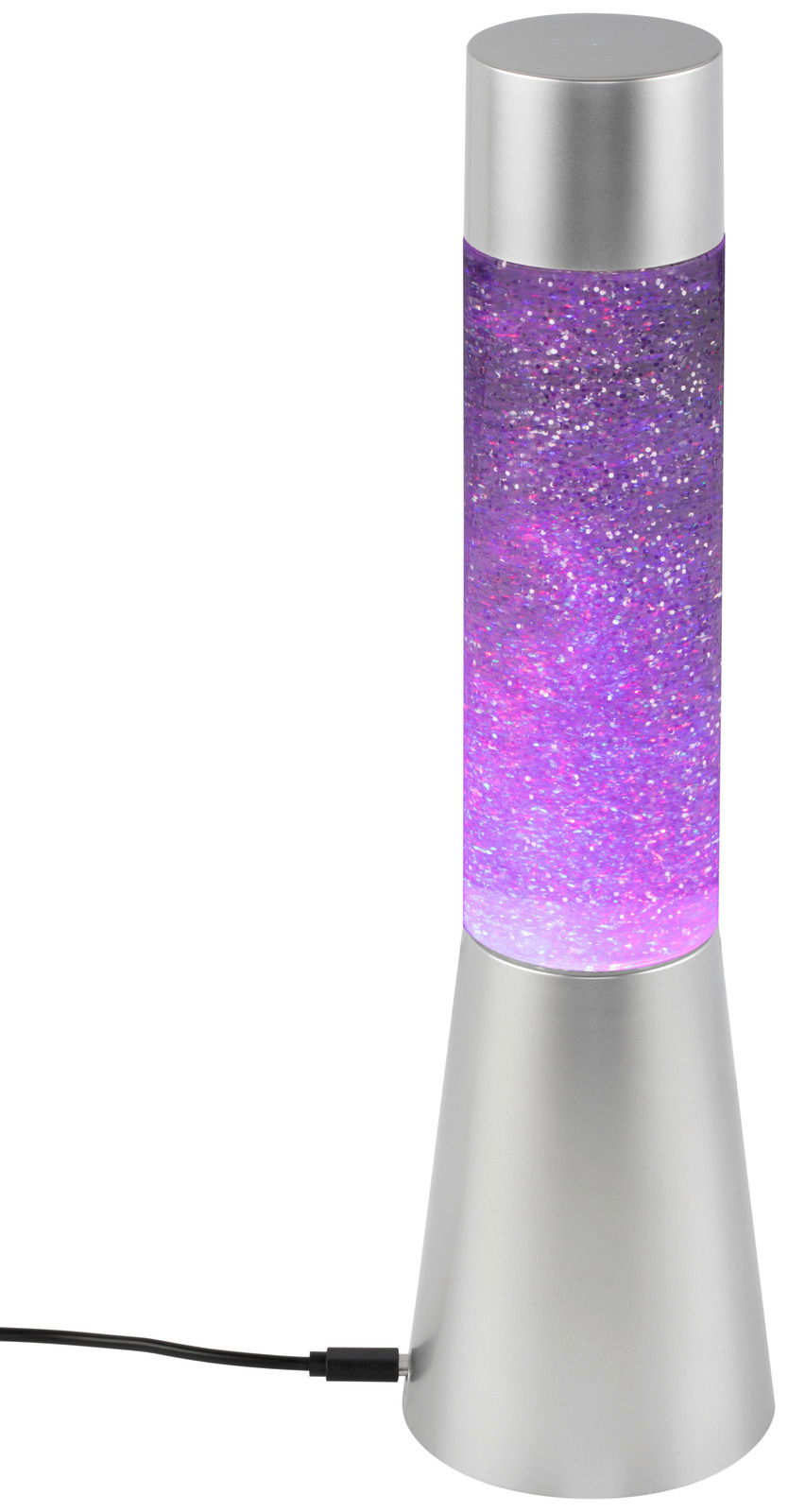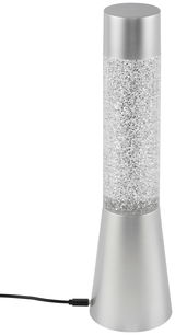 Als origineller Blickfang bereichert die Glitterleuchte "TOWER" Ihre moderne Einrichtung. Die silberfarbene Kunststofflampe im futuristisch anmutenden Lavalampendesign versprüht den typischen Retrocharme im Stil der 1960er-Jahre. Ihr transparentes Sichtfeld wird von einem Glitzerspektakel in wechselnden Farben in Szene gesetzt, sobald Sie die Leuchte aktivieren. Das D/H ca. 8,5 x 32,5 cm große und standfeste 3,5 kg schwere Modell mit fest verbautem Multicolour-LED-Leuchtmittel (RGB, Schutzklasse III, Netzbetrieb, 150 V, USB-Kabel inkludiert) kann auf einem Sideboard, Beistelltisch oder Nachtkonsole zum Einsatz kommen. Kaufen Sie die faszinierende Glitterleuchte "TOWER" auch für ein Jugend- oder Gästezimmer!