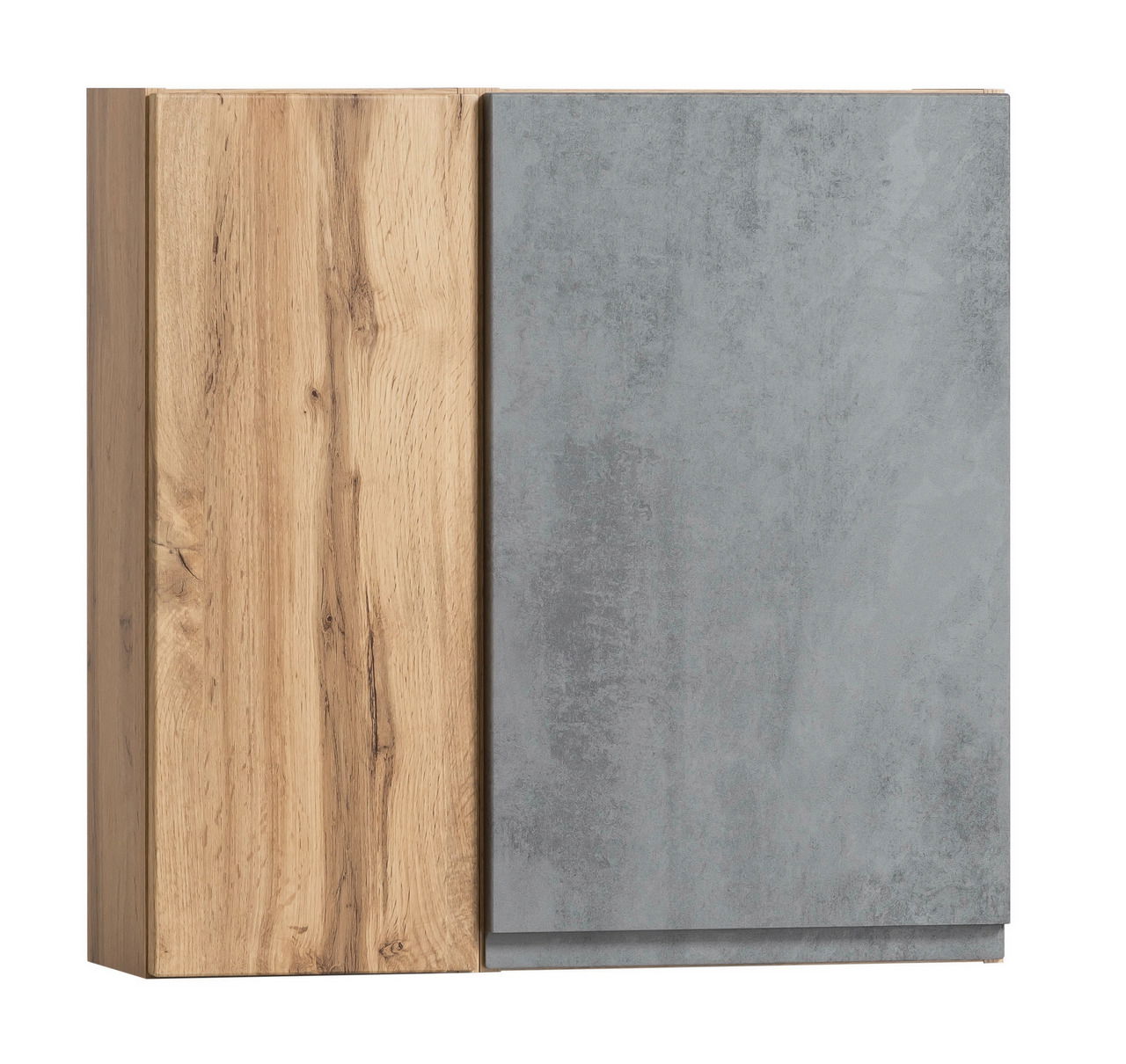 Der XORA Hängeschrank VARESE vereint modernes Design und trendige Materialien zu einem stilvollen Möbelstück. Mit seinem eleganten Beton-Front und dem warmen Korpus in Eiche Wotan ist dieser Hängeschrank ein echter Blickfang für jede moderne Einrichtung. Die grifflosen Drehtüren verleihen dem Schrank ein minimalistisches und zugleich edles Erscheinungsbild. Gefertigt aus hochwertiger Holznachbildung, bietet der Schrank langlebige Qualität und eine ansprechende Optik. Mit einer Breite von 65 cm ist er die ideale Lösung für zusätzlichen Stauraum in Küche, Bad oder Wohnzimmer, ohne dabei zu viel Platz einzunehmen.