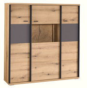 XORA Highboard MELO – Eleganz trifft Funktionalität Das XORA Highboard MELO überzeugt nicht nur durch seine ansprechende Optik, sondern auch durch seine hohe Funktionalität. Die zwei Holztüren und die Holz-/Glastür bieten ausreichend Platz, um Ihre persönlichen Gegenstände stilvoll zu verstauen. Die robuste Holznachbildung sorgt für Stabilität und Langlebigkeit, während der schwarze Kunststofffuß für einen sicheren Stand sorgt. Mit einer Fußhöhe von ca. 1 cm fügt sich das Highboard nahtlos in jeden Raum ein. Entdecken Sie die perfekte Kombination aus Design und Funktionalität – bestellen Sie das XORA Highboard MELO noch heute!