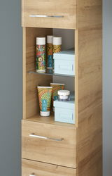 Der eichenfarbene Hochschrank "PAULA" von Pelipal präsentiert sich mit Front und Korpus in Riviera Eiche quer Nachbildung. Akzente setzen die Griffe der beiden Drehtüren und des Schubkastens in glänzendem Chrom. Für eine intelligente Einteilung des Stauraums sorgen zudem eine Nische und zwei Einlegeböden. Der Schrank aus Holznachbildung hat die Maße B/L/H von ca. 30 x 185,5 x 33 cm. Holen Sie das Stauraumwunder Hochschrank "PAULA" von Pelipal in Ihre Wohnung!