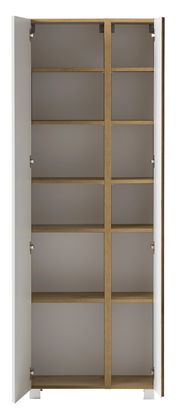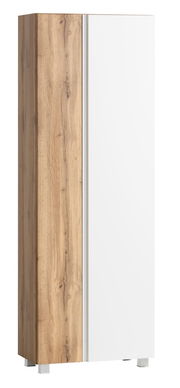 Der XORA Hochschrank VARESE ist ein echter Hingucker für Ihr Zuhause. Mit seinem modernen und trendigen Design fügt er sich nahtlos in jeden Raum ein. Die elegante Kombination aus einer weissen Front und einem Korpus in Eiche Wotan verleiht diesem Möbelstück eine zeitlose Ästhetik. Der Hochschrank verfügt über zwei Drehtüren und bietet reichlich Stauraum für Ihre Utensilien. Gefertigt aus hochwertiger Holznachbildung, besticht er durch seine Langlebigkeit und Widerstandsfähigkeit. Zudem verzichtet der Schrank auf Griffe, was ihm eine besonders klare und minimalistische Optik verleiht.