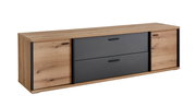 Das XORA Lowboard MELO besticht durch seinen natürlichen und massiven Stil, der jedem Raum eine warme und einladende Atmosphäre verleiht. Die Kombination aus einer Eiche Evoke Melamin Nachbildung für Korpus und Front sowie dem kontrastierenden schwarzen Kunststofffuß verleiht diesem Möbelstück eine zeitlose Eleganz. Ausgestattet mit zwei Drehtüren und zwei Schubladen bietet es vielfältigen Stauraum für Ihre persönlichen Gegenstände. Die hochwertigen Griffe aus schwarz-grauem Metall und die Fußhöhe von ca. 1 cm unterstreichen das durchdachte Design. Die holzähnliche Nachbildung sorgt für eine erstklassige Optik, die Sie begeistern wird.