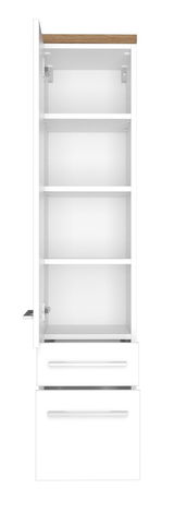 Erleben Sie den stilvollen XORA Midischrank DAVOS, der in einem eleganten Weiss erstrahlt. Der Schrank verkörpert modernes Design und ist ein echtes Highlight für jeden Raum. Durch die hochwertige Holznachbildung als Hauptmaterial bietet er nicht nur optische Eleganz, sondern auch eine robuste Struktur. Mit einer Drehtür und zwei praktischen Schubladen vereint der Midischrank Funktionalität und Stil in einem Möbelstück. Die grifflosen Türen mit Softclose-Technik sorgen für eine sanfte und leise Schliessung, was den Komfort zusätzlich erhöht. Der hängende Aufbau spart Platz und verleiht Ihrem Raum eine moderne, schwebende Optik.