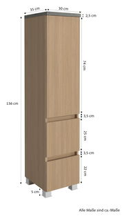 XORA Midischrank TOULON – Funktionalität trifft Design Erleben Sie die perfekte Kombination aus Stil und Nutzen mit dem XORA Midischrank TOULON. Seine hochwertige Holznachbildung sorgt für ein langlebiges und pflegeleichtes Möbelstück, das Ihrem Zuhause einen modernen Touch verleiht. Die elegante Drehtür mit Softclose-Funktion und die zwei praktischen Schubladen bieten reichlich Platz für Ihre Alltagsgegenstände. Als vielseitiges Möbelstück kann es sowohl hängend als auch stehend montiert werden, um sich ideal an Ihre Raumgegebenheiten anzupassen. Verleihen Sie Ihrem Interieur einen Hauch von Eleganz und bestellen Sie den XORA Midischrank TOULON noch heute!