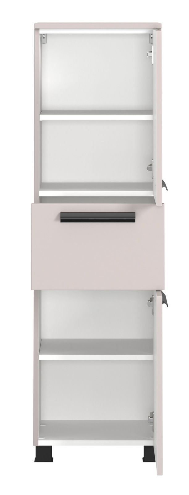 Der XORA Midischrank VANNES ist die perfekte Ergänzung für moderne Wohnräume. Mit seinem eleganten Design und den zeitgemäßen Farbakzenten in Kaschmir und Schwarz fügt er sich nahtlos in jedes Interieur ein. Die Kombination aus den Kaschmir-farbenen Fronten und dem schwarzen Fuß verleiht dem Schrank eine stilvolle Optik, während die Holznachbildung als Hauptmaterial für eine langlebige und robuste Struktur sorgt. Der Schrank verfügt über zwei Drehtüren mit Softclose-Funktion, die ein sanftes und geräuschloses Schließen garantieren. Der hängende oder stehende Aufbau bietet Flexibilität bei der Platzierung.