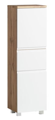 Der XORA Midischrank VARESE vereint modernes Design mit funktionaler Eleganz. Die Front in Weiss harmoniert perfekt mit dem Korpus in Eiche Wotan, was dem Schrank einen zeitgemässen und zugleich warmen Look verleiht. Dank der grifflosen Gestaltung entsteht eine besonders klare und minimalistische Optik. Die Drehtüren mit Softclose-Funktion sorgen für ein sanftes und geräuschloses Schliessen. Mit einer Kombination aus 2 Türen und 1 Schublade bietet dieser Midischrank ausreichend Stauraum für Ihre Badutensilien. Das Hauptmaterial besteht aus hochwertiger Holznachbildung, die nicht nur robust, sondern auch pflegeleicht ist.