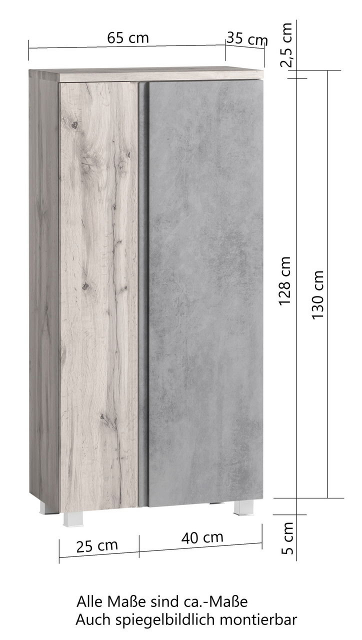 Der XORA Midischrank VARESE kann sowohl stehend als auch hängend montiert werden, was Ihnen maximale Flexibilität bei der Raumgestaltung bietet. Die zwei Drehtüren ermöglichen einen schnellen und einfachen Zugriff auf Ihre Utensilien. Ob im Badezimmer, Flur oder Wohnzimmer, dieser Schrank passt sich Ihren Bedürfnissen und Ihrem Stil an. Erleben Sie das perfekte Zusammenspiel von Design und Funktionalität und bringen Sie frischen Wind in Ihr Zuhause. Bestellen Sie den XORA Midischrank VARESE noch heute und geniessen Sie modernen Komfort.