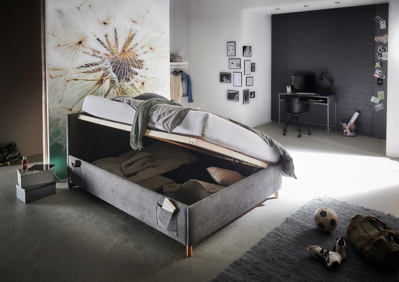 Polsterliege COOL – Komfort und Funktionalität in einemDie hochwertige Verarbeitung des Hauptmaterials aus Stoff und die Fusskonstruktion aus Massivholz garantieren Stabilität und eine lange Lebensdauer. Die moderne Polsterung sorgt für ein angenehmes Liegegefühl, selbst ohne Matratze, sodass Sie individuell entscheiden können, welche Matratze Ihren Schlafbedürfnissen entspricht. Das integrierte Bettkastensystem bietet eine praktische Lösung zur Aufbewahrung von Bettwäsche und anderen Utensilien, was besonders in kleineren Wohnräumen von grossem Nutzen ist. Werten Sie Ihr Schlafzimmer mit der XORA Polsterliege COOL auf und geniessen Sie Funktionalität gepaart mit ansprechendem Design. Zögern Sie nicht und erleben Sie selbst, wie diese Polsterliege Ihr Zuhause bereichert.
