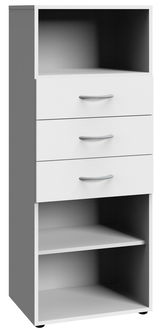 Organisiertes Regal mit SchubkästenKompakt konstruiert, benötigt das B/H/T ca. 30 x 126 x 40 cm messende Regal nur wenig Platz. Zudem ist die 21 kg schwere, stabile Holznachbildung leicht zu pflegen. Ordner, Bilder oder Geschirrsets präsentieren Sie in drei offenen Fächern, Unterlagen oder Schreibzeug in drei Laden mit Kunststoffgriff. Ordern Sie das Xora Regal mittel "MULTIRAUMKONZEPT"!