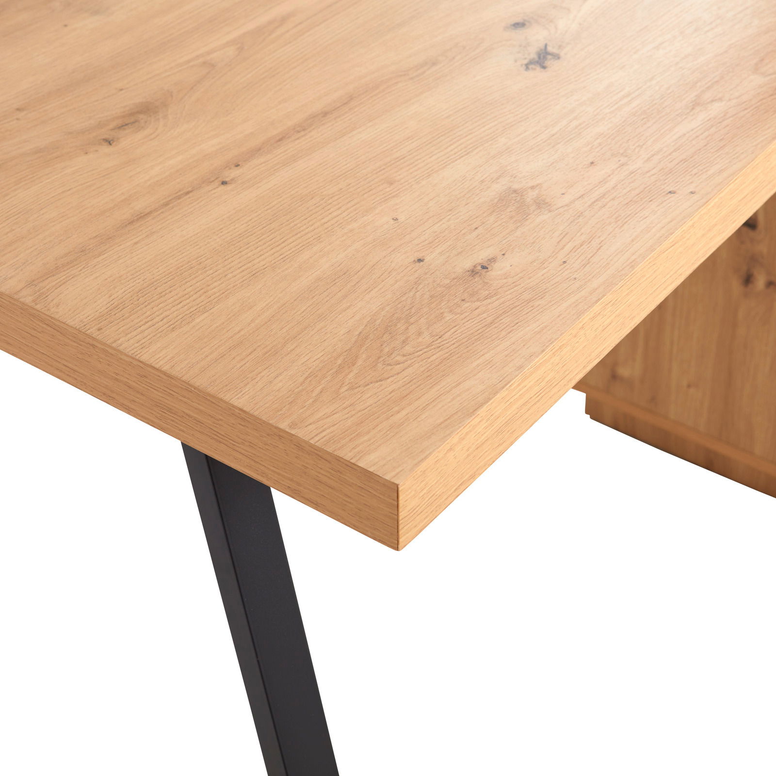 Der Schreibtisch DANZIG lässt wirklich keine Wünsche mehr offen, denn alles Wichtige findet hier seinen Platz. Sie werden dank der Schublade sehr viel Freude mit dem Schreibtisch haben. Sie können bei diesem Schreibtisch auf hohe Qualität der Marke XORA vertrauen. Die schwarzen Füsse aus Metall passen optimal zum hübschen Gesamtbild des Modells DANZIG. Der Schreibtisch ist eichefarben. Die Basis des Büromöbels bildet ein Gestell, welches aus MDF besteht. Das Modell DANZIG kann auch optisch durch sein modernes Design überzeugen. Es hat eine Gesamtbreite von 140 cm, eine Höhe von 76 cm sowie ein Tiefenmass von 60 cm. Der Schreibtisch kommt mit einem Gewicht von 33,5 kg. Über den Schreibtisch DANZIG lässt sich nur Positives sagen.