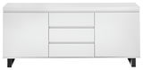 Sie werden dieses Sideboard lieben. Ein Türdämpfer ist als integriertes Extra im Modell AUSTIN eingebaut. Mit diesem Schubladenschrank treffen Sie eine Wahl für ausgezeichnete XORA-Markenqualität. Das Modell AUSTIN ist mit zwei Drehtüren ausgestattet, hinter welchen sich Ihnen Platz zum Unterbringen Ihres Hab und Guts bietet, und trägt mit seinen drei Schubkästen dazu bei, Ihre vier Wände ordentlich zu halten. Der weisse Schubladenschrank kann auch optisch durch sein modernes Design punkten. Das Möbel aus Holz-Nachbildung weist eine Gesamtbreite von 166 cm, eine Höhe von 74 cm und ein Tiefenmass von 40 cm auf. Die Fronten aus einem weissen Material vervollständigen das ansprechende Gesamtbild der Kommode. Das Modell AUSTIN besitzt ein Gesamtgewicht von 50,4 kg. Die schwarzen Füsse aus Metall sichern einen festen Stand. Diese Kommode verleiht Ihrem Zuhause ein heimeliges Flair.